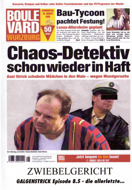 Axel Strick, einer der beiden Hauptcharaktere der seit 1996 etablierten Serie, gerät dabei wegen einer für ihn scheinbaren Lappalie in die Mühlen der Justiz. Der Flirt mit einer jungen Frau nach einem Kneipenbesuch geht dermaßen in die Hose, dass das Objekt von Stricks Begierde im wahrsten Sinne des Wortes baden geht – durch seine Antipathie für Zwiebeln, welche das Mädel vorher gegessen hatte. Vor dem Kadi wird Strick von seinem Lieblingsfeind, dem arroganten Staatsanwalt Maurer so richtig durch den Fleischwolf gedreht. Schmutzige Wäsche wird gewaschen, olle Kamellen wieder aufgewärmt und durch jede Menge Wortwitz und Situationskomik amüsiert sich der Zuschauer etwa 30 Minuten prächtig über den zielsicher kein Fettnäpfchen auslassenden Strick.